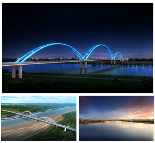 該方案打破了黃河河面和環(huán)境的單調(diào)平直,采用兩小拱一大拱的造型,將遠山近水烘托調(diào)和,把水面和陸地相連,連接黃河的南岸與北岸,連接濟南的昨天與今天,“攜河”發(fā)展,將“屏障”變?yōu)?ldquo;資源”。河川秀美,一城山色,充分體現(xiàn)了濟南山水文化含蓄、輕柔的質(zhì)樸美。