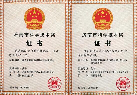近日,濟南黃河路橋集團兩項成果榮獲濟南市科技進步獎,分別為銀河路橋主要負責的“瀝青無機降粘溫拌技術應用研究”榮獲濟南市科技進步獎二等獎,獲5萬元獎金;二分公司主要負責的“電纜隧道側壁組合鋼模混凝土澆注技術應用研究”榮獲濟南市科技進步獎三等獎,獲2萬元獎金。