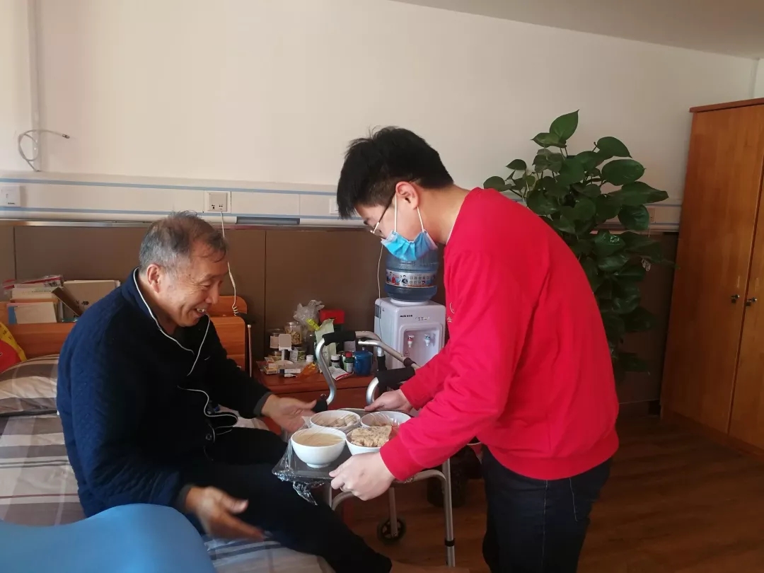 在介護(hù)區(qū),我們還看到了兩位正在忙碌的“95后”小伙子。97年出生的陳安義,家住德州,本來(lái)已經(jīng)買好了回家的車票,接到抗擊疫情的通知,第一時(shí)間退了車票主動(dòng)請(qǐng)戰(zhàn)。98年出生的欒希浩,老家在煙臺(tái),也是放棄了春節(jié)假期,跟陳安義兩人共同負(fù)責(zé)介護(hù)區(qū)二樓的四戶長(zhǎng)者。