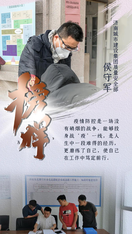 “疫情防控是一場沒有硝煙的戰(zhàn)爭,能夠投身戰(zhàn)‘疫’一線,是人生中一段難得的經(jīng)歷,更磨練了自己,使自己在工作中篤定前行,能獲得‘抗疫·出彩統(tǒng)戰(zhàn)人’榮譽對我個人是鼓勵與鞭策,我將視此榮譽為新起點,做一名合格的出彩濟南建設(shè)人”,侯守軍說道。