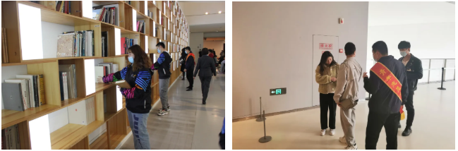 活動現場,志愿者們認真聽取了美術館負責人對“雙年展”布展情況的介紹,了解志愿服務內容。經過分工,大家迅速到達自己的指定崗位,維持場館內外排隊觀眾秩序,熱心引導、幫助觀眾尋找展廳,并協助工作人員整理擺放設施,提醒觀眾按照美術館要求文明參觀等,獲得了館內工作人員的一致好評。