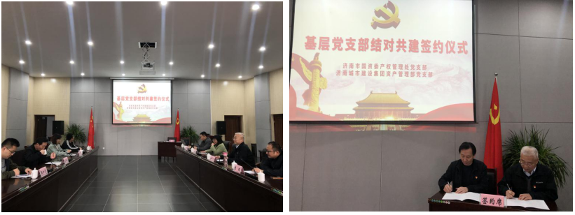 活動中,結對雙方首先舉行了結對共建簽約儀式,雙方黨支部書記分別進行了講話。資管理部黨支部負責同志表示,希望通過“將黨建作為工作統領、以共建促交流、將信任轉化為責任”三個方面促進黨建與工作相互融合,相互促進。市國資委產權管理處黨支部負責同志重點闡述了黨建工作的重要性,在建立科學規范、靈活高效的國有資產管理制度,充分發揮資產效益等重點工作給出了建議指導。隨后,雙方黨支部書記簽訂了《基層黨組織結對共建協議書》。
