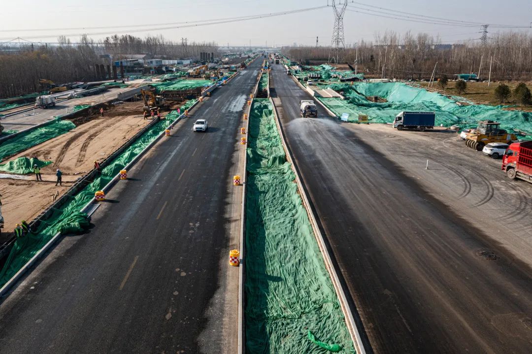 12月6日,由濟南城市建設集團受委托建設,中建八局二公司負責施工的濟南黃河大道(一期)工程五標段(邢家渡干渠-104國道)實現(xiàn)北半幅主路快車道通車,順利完成既定節(jié)點施工。黃河大道該標段通行車道由雙向兩車道增加至四車道,通行能力進一步提高。此外,崔寨南互通立交段北側(cè)兩個匝道口開放通行,南側(cè)兩個匝道口進入施工階段。