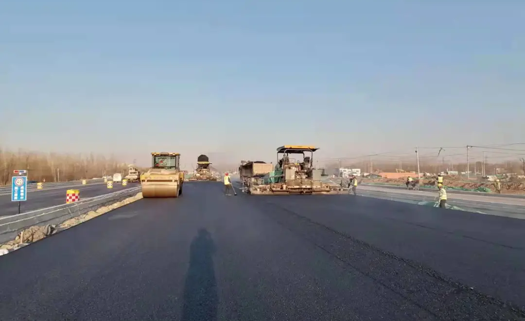 在濟樂高速崔寨南互通立交南側(cè)出口處,項目與山東省交通科學研究院合作,首次在濟南市政工程中試驗應用全厚式瀝青攤鋪技術。該技術不但能有效提高路面結(jié)構使用壽命,同時可以減少水泥穩(wěn)定碎石的使用量,在優(yōu)化瀝青路面級配的同時,節(jié)省工程造價,并將施工工期縮減為原來的60%左右。