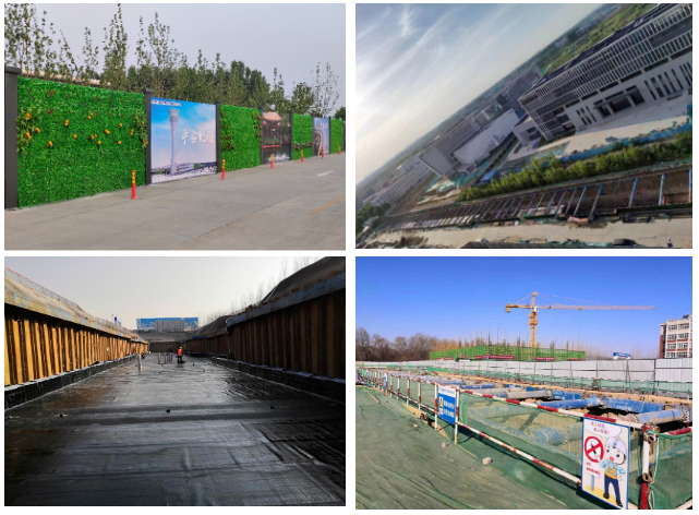 濟南遙墻國際機場二期改擴建工程-工作區工程-道路與綜合管廊工程,道路總長度4.64km(道路3.12km,臨時路1.52km),次一路全長1.67km,支四路全長0.97km,支六路全長0.48km。臨時1路長度1.22km,臨時2路長度0.21km,臨時3路長度0.088km。管廊長度約4.3km,均為雙艙型管廊(綜合艙容+電力艙),基坑最大深度11m,覆土厚度2-3m。其中次1路綜合管廊長度約1.64km,支4路綜合管廊長度約0.85km,支6路管廊長度約0.62km,航站區南段1.19km,目前管廊工程已完成主體施工約1.2公里。
