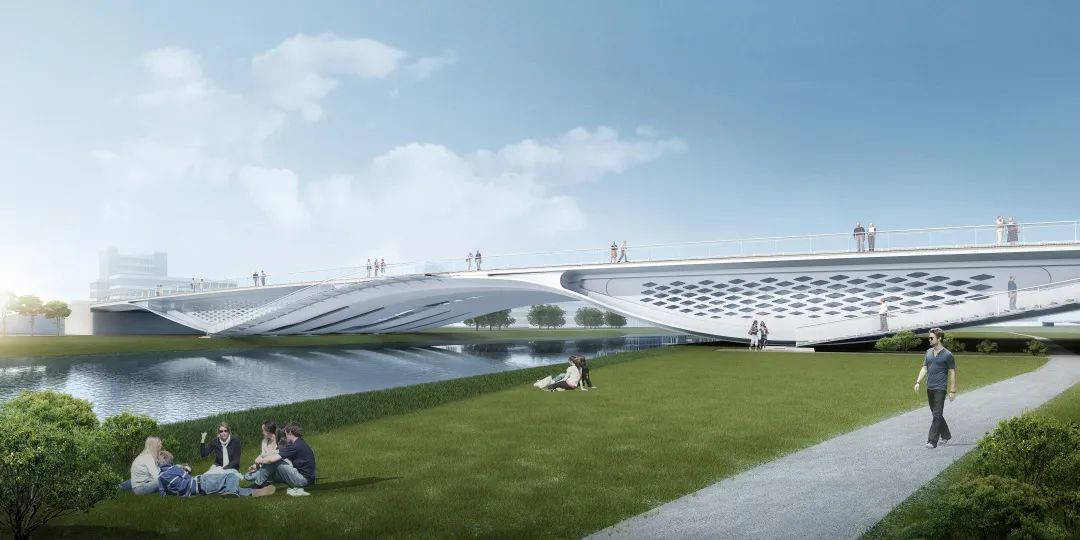 濟南城市建設集團受起步區(qū)管委會委托建設的橫一路、橫二路大寺河橋梁項目,由法國MARC MIMRAM INGENIERIE S.A.與東南大學建筑設計研究院有限公司聯(lián)合設計,并由馬克·米姆拉姆先生擔任主設計師,由濟南城建集團有限公司和濟南金曰公路工程有限公司負責承建。