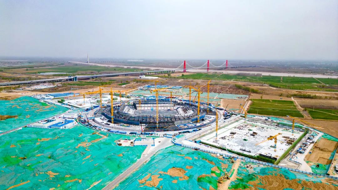 項目總建筑面積約19.73萬平方米,地下1層,地上5層,建筑高度60米,場館外圈直徑達280米,索桁架最大懸挑長度約45米,總用鋼量2.34萬噸。建成后可容納6萬余人,是省內首座超大型專業足球場,國內最大的專業足球場之一,具備承辦世俱杯、亞洲杯等國際足聯、亞足聯的頂尖賽事能力。目前,足球場地下一層主體已全部完成,正有序推進地上主體結構施工工作,預計2024年底竣工。
