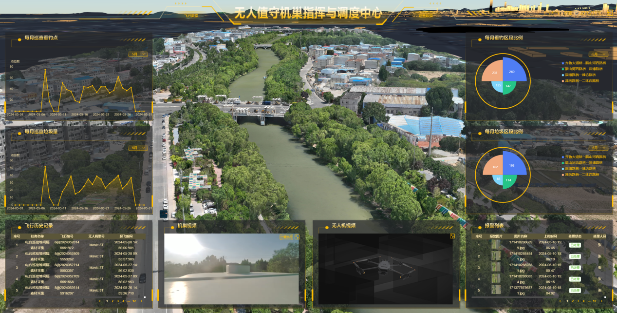 該機(jī)巢布置于湖心島,可對(duì)華山景區(qū)水面、綠化共計(jì)6.25平方公里的區(qū)域進(jìn)行日常巡檢。該機(jī)巢具備無人機(jī)定時(shí)自動(dòng)收放、飛行、充電功能,徹底實(shí)現(xiàn)無人化值守,支持對(duì)無人機(jī)及載荷遠(yuǎn)程控制。同時(shí),自主巡檢系統(tǒng)通過AI算法,對(duì)無人機(jī)獲取的低空原始數(shù)據(jù)定位分析,如發(fā)現(xiàn)問題,經(jīng)管理專員核查后,可通過業(yè)務(wù)處理平臺(tái)app派發(fā)至運(yùn)營人員銷項(xiàng)處理。